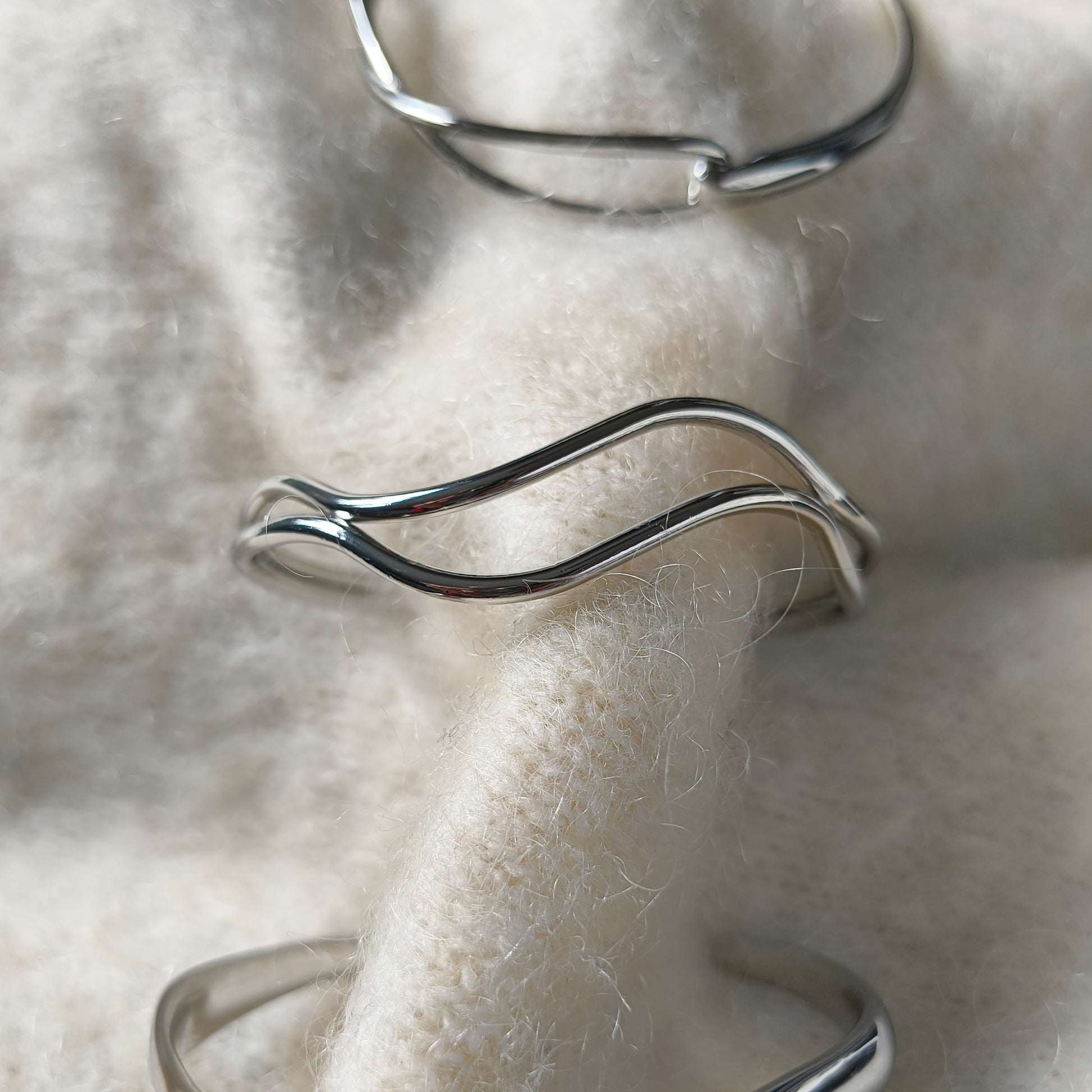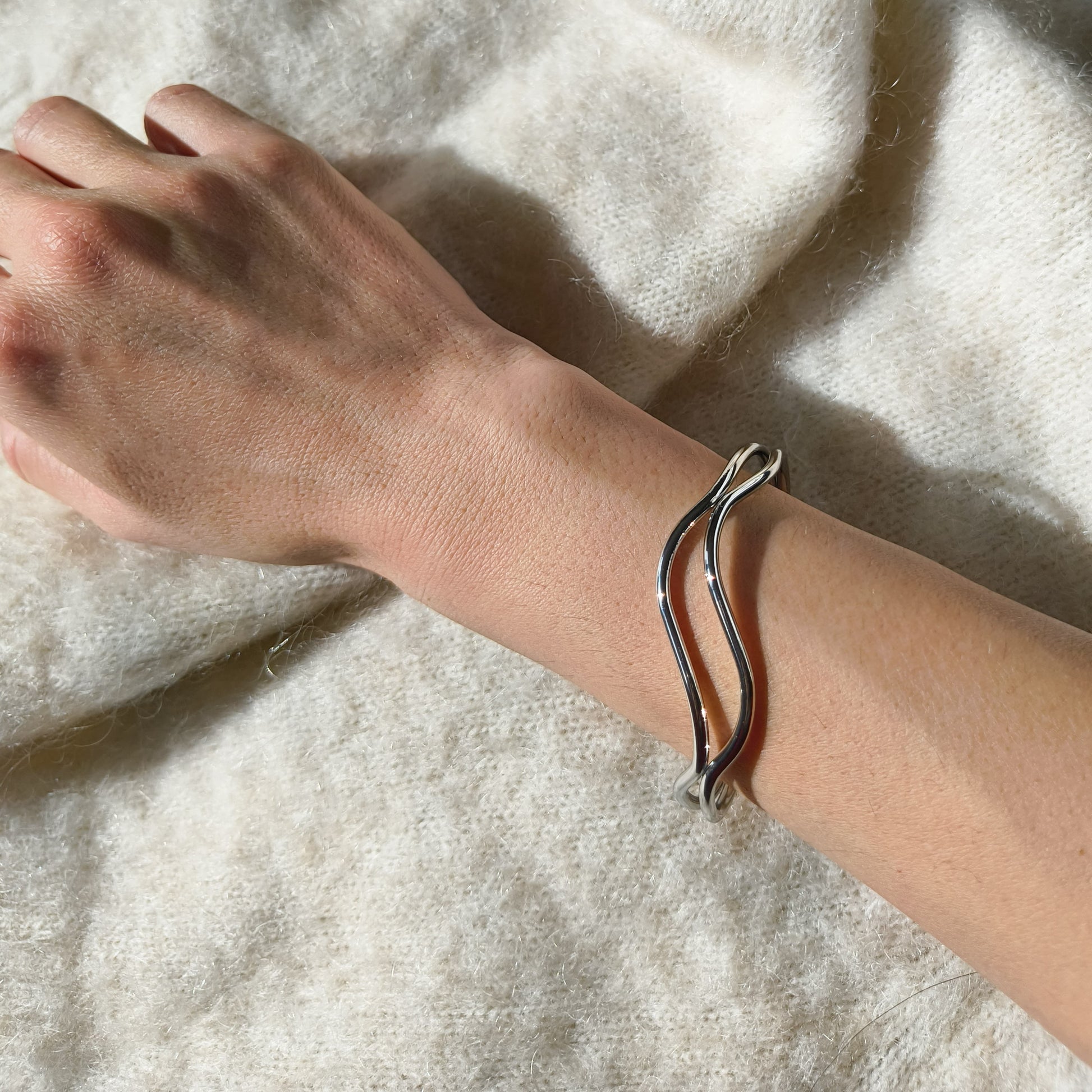 Design: Graceful wave silhouette that gently curves around the wrist