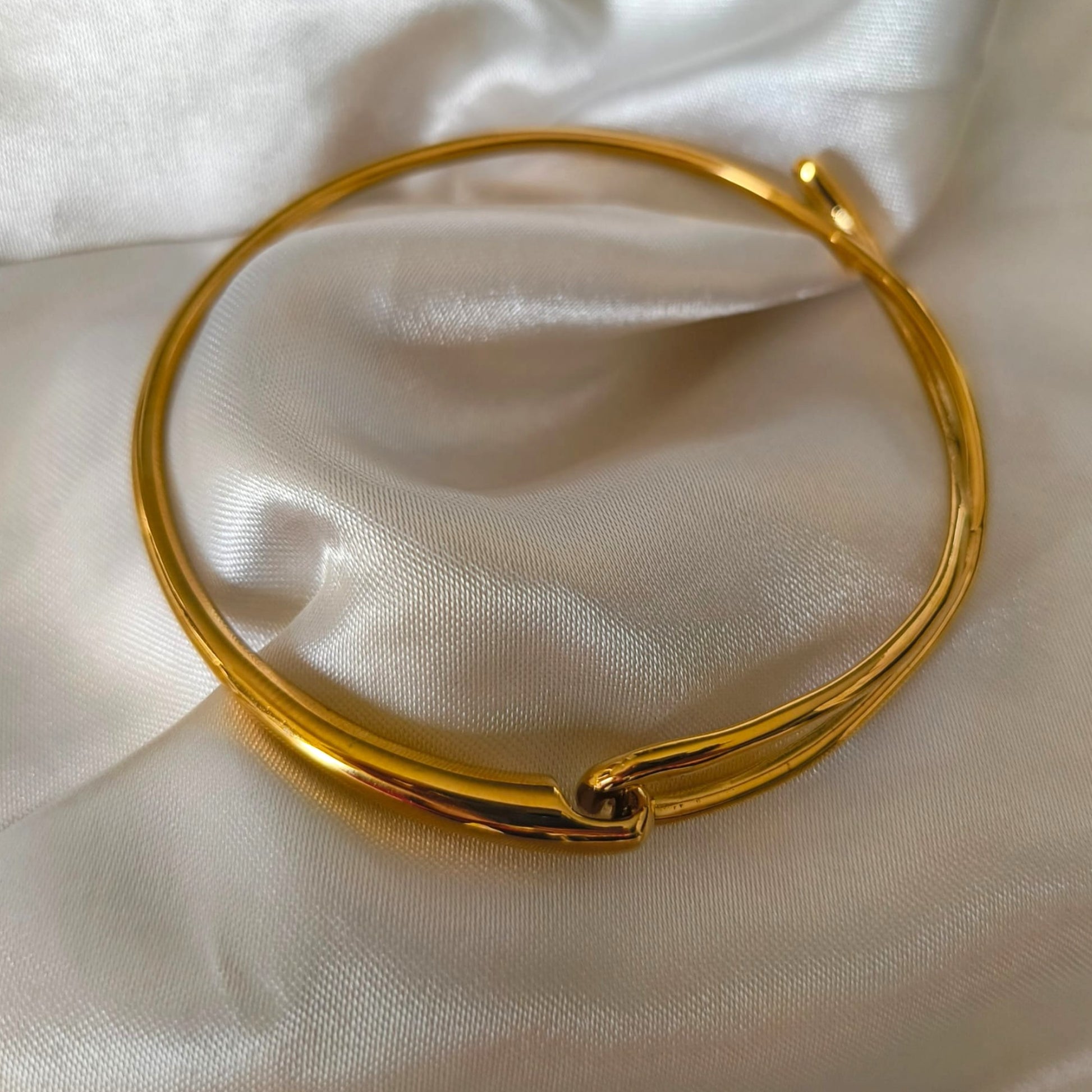 This bangle embodies our philosophy of "classic elegance with a contemporary edge." The sophisticated knot design adds architectural interest while maintaining the clean lines that define modern minimalism. Crafted from durable stainless steel and finished with luxurious 18K gold plating, this piece is designed to be worn every day and treasured for years to come.