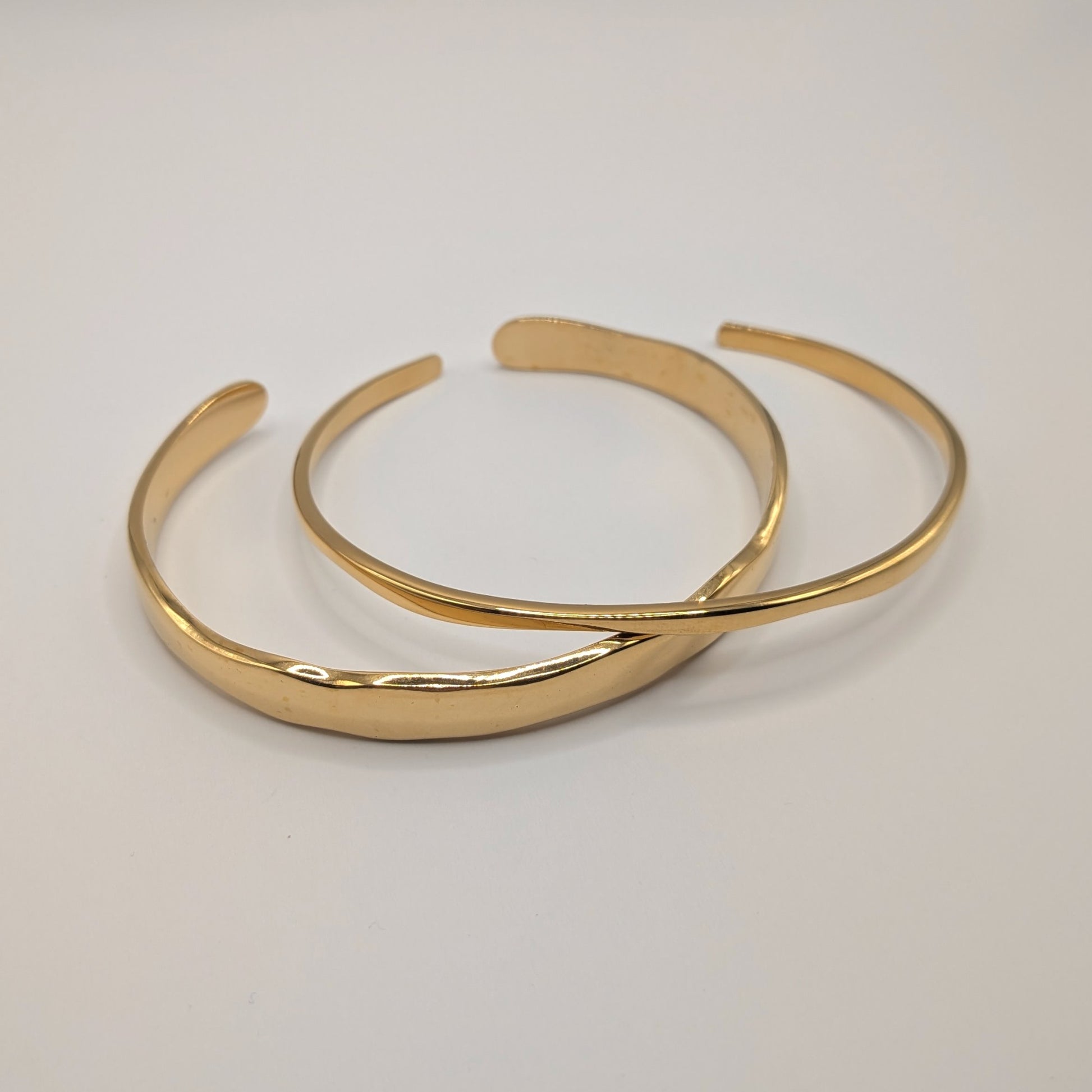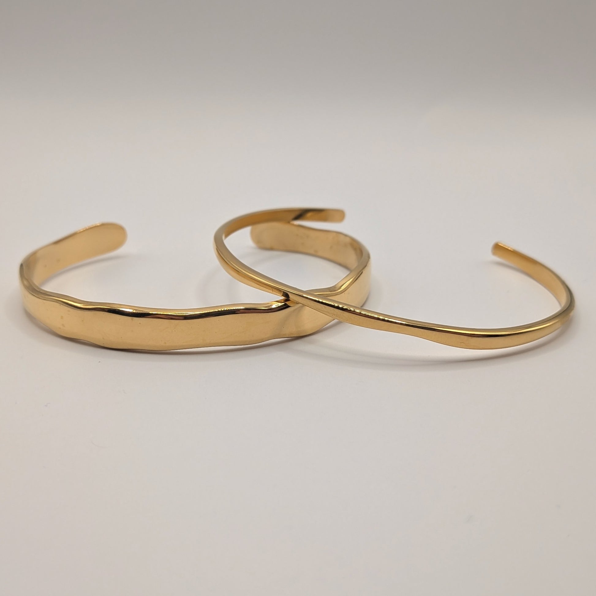 Elevate your everyday style with our timeless trio of open cuff bracelets. Crafted from premium stainless steel with a luxurious 18K gold plated finish, this stackable set embodies effortless elegance and modern sophistication.